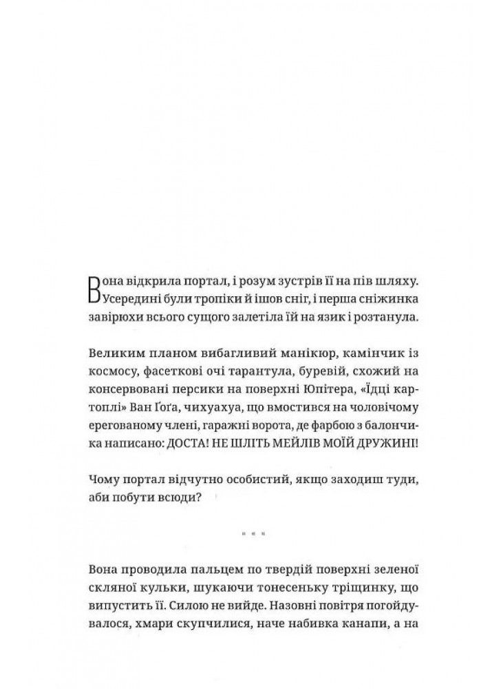 Автобиографическая героиня живет во времена диктатора, пишет ежедневник, публикует афоризмы в портале. А еще у нее есть муж и кот по кличке Доктор Сракусик. Но внезапно все меняется, когда у сестры рождается дочь с редким заболеванием. Знаковый текст о том, возможна ли жизнь после Интернета.