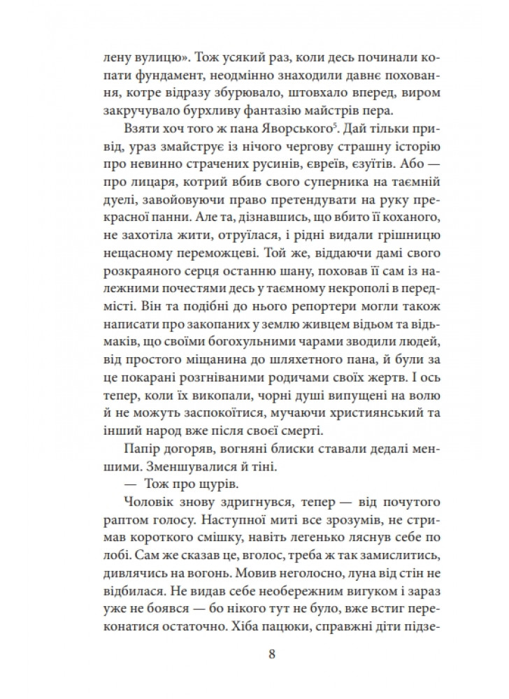 Кажуть, у ньому вже сто років блукає привид Чорної пані. Всякого, хто зустрінеться з нею, чекає погибель. І така смерть на Валовій — не перша. У гонитві за привидом Кошовий та його відданий друг Йозеф Шацький змушені зануритися у львівські нетрі та спуститися на міське дно. Ризикуючи життям, вони таки дізнаються правду про привида. І вона дуже не сподобається загадковій та впливовій красуні Магді Богданович…