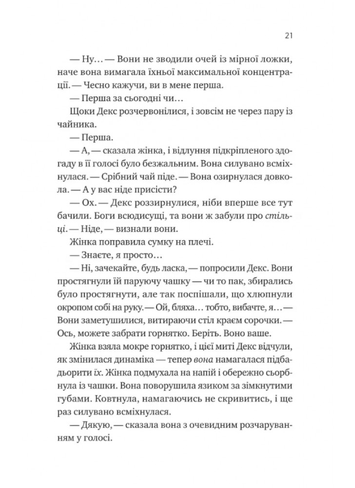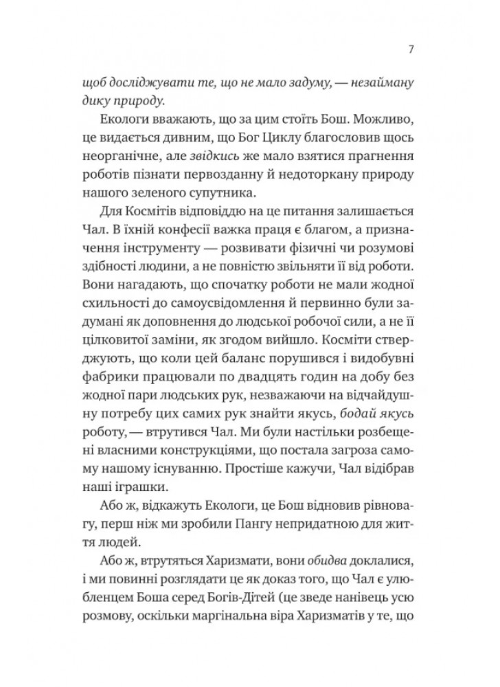 Письменниця дозволяє проникати в глибини свідомості персонажів, щоб осягнути їхню мотивацію, а також зрозуміти, що підштовхує героїв до дій. Авторка розгортає сюжет у постіндустріальному світі, в якому колись панував самоусвідомлений ШІ: роботів поглинули пустелі, а людству довелося існувати без допомоги кібернетичних систем. Після зникнення розумних механізованих пристроїв минуло багато років, і населення єдиного континенту Панга почало вважати роботів міфом. Декс також вірили у ці байки, тому й уявити не могли, що доля зведе їх з уособленням легенд…