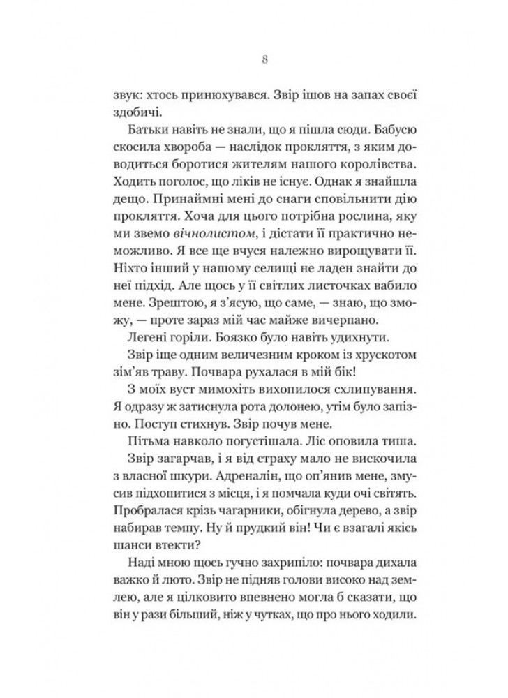 Девушка научилась мастерски делать из нее напитки, однако чтобы собрать хотя бы немного вечнолистника, нужно нарушить закон. Подданным королевства строго запрещено наведываться туда, колдовать и обращаться на животных, как прежде. И все из-за соглашения между покойным королем и демоном. Финли решилась нарушить запрет и стала пленницей в замке Зверя. Кто он и что им управляет? Девушка может попытаться спасти его и все забытое королевство, правители которого погрузились в разврат, — для этого она должна обуздать монстра в Звере. Сможет ли Финли противостоять мощной страсти? И что выберет, когда придется решать, на чьей стороне остаться?