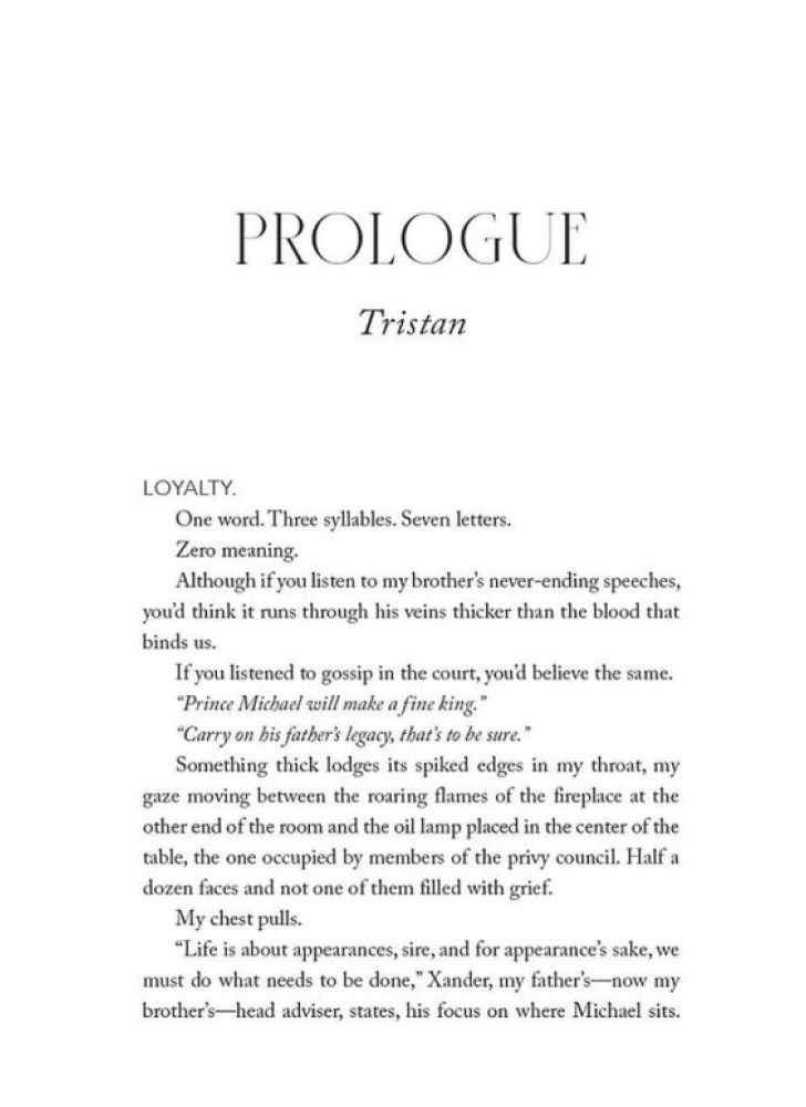 Вона не належить йому... вона належить короні. Принц Трістан Фааса ніколи не був призначений для трону. Ця доля завжди належала його братові, Майклу. Той самий брат, який відповідає за сповнене страждань дитинство Трістана і шрам, що спотворює його обличчя. Коли їхній батько помирає, Майкл готується зайняти трон, а Трістан — його вкрасти. Як лідер таємного повстання, Трістан не зупиниться ні перед чим, щоб покласти край правлінню брата.