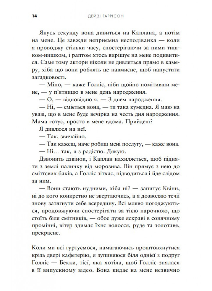 Дейзі Гаррісон — акторка та драматург, яка проживає в Нью-Йорку. У 2020 році вона закінчила Північно-Західний університет, де отримала спеціальність «Театр і творче письмо». Вона любить своїх братів і сестер, своїх собак, перечитувати фентезі і слухати музику таких виконавців, як Тейлор Свіфт і Енні Блекман.