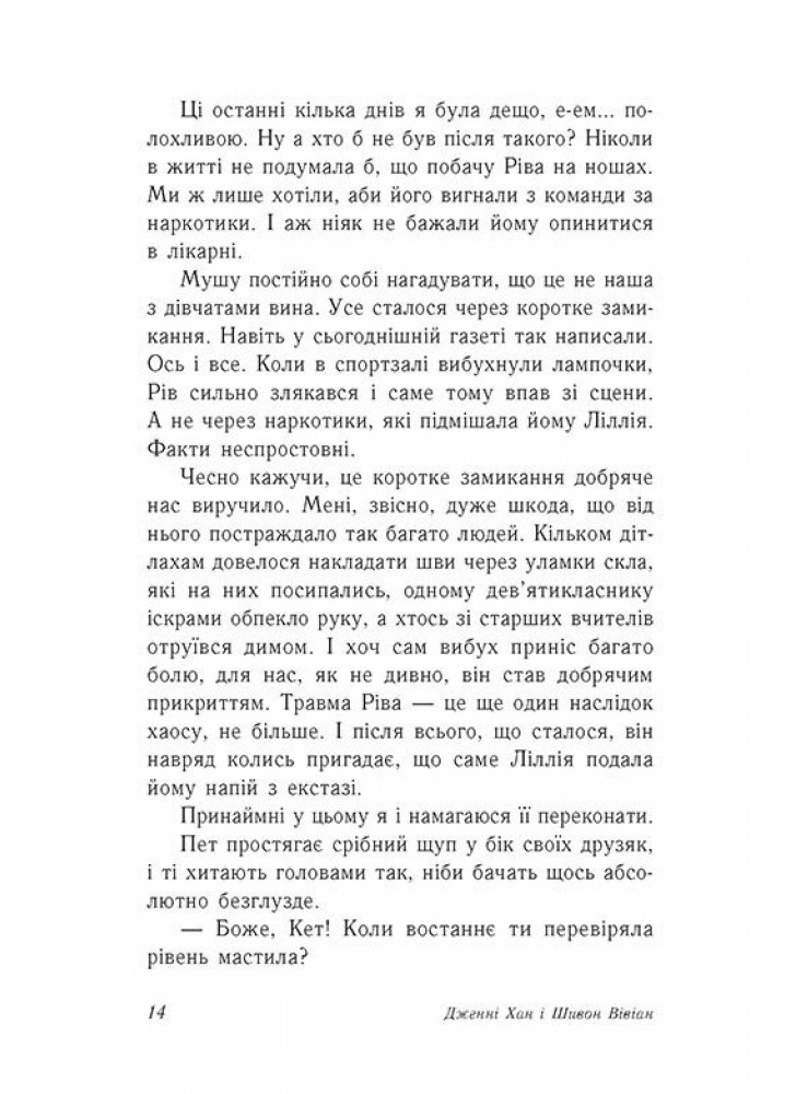 Роман від авторки бестселера "Усім хлопцям, яких я кохала"; має динамічний, напружений сюжет із непередбачуваним фіналом; порушує низку актуальних проблем для сучасних підлітків. Нарешті Мері, Кет і Ліллія поквиталися зі своїми кривдниками. Однак довгоочікувана помста не приносить дівчатам полегшення.
