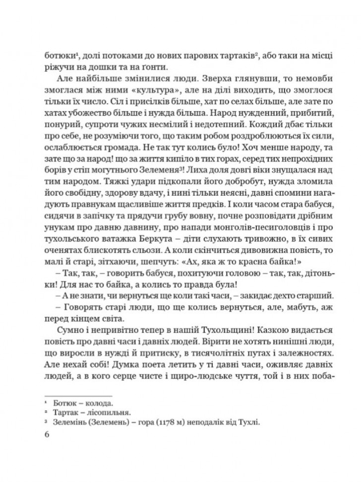 «Я пишу повесть историческую, с XIII века (нападение монголов), – сообщал писатель в письме, – в которой стараюсь на основании актов исторических о древней общественной жизни показать жизнь самоуправную, безначальную и федеральную наших общин, борьбу элемента вечево-федерального с деструктивным княжеским. -боярским и в конце с разрушающей силой монголов. Взгляды, которые высказывает Захар Беркут, могут считаться характеристикой взглядов тогдашнего простого народа на князей и их кровавые междоусобия. Повесть тота, хотя и заключает в себе много исторической и неисторической декорации, все же, надеюсь, пробудит живой интерес и у современных людей».