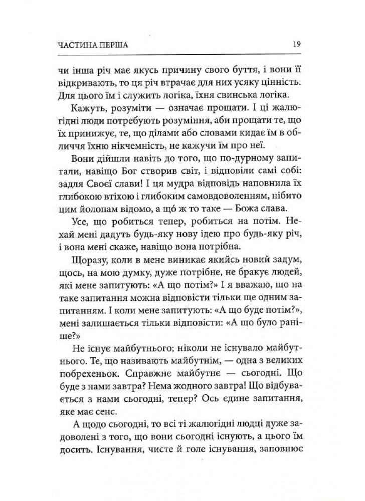 В то же время, это самостоятельное произведение, которое ищет в этой памятке скорее источник вдохновения, воспринимая ее за материал для строительства собственной философской концепции. Здесь бeзум противопоставлен рационалистическому животику обывателя, сны становятся реальностью, трепетное стремление вечности пронизывает естество индивида, побуждая искать опору для своего существования вне всех возможных горизонт, а народы, возвышаясь над своей рассеянностью, решаются на собственные героические затеи.