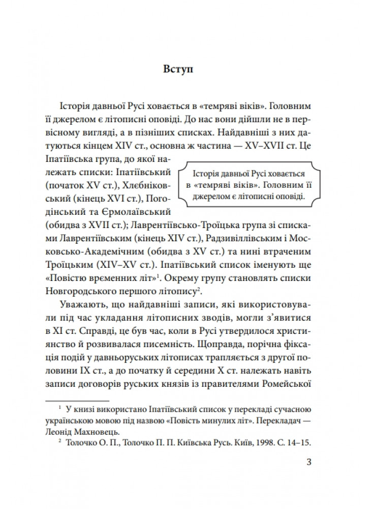 У представленій розвідці на широкому фактичному матеріалі, з опорою на відомості давньоруcьких літописів та із залученням найновіших досліджень і публікацій охарактеризовано та проаналізовано історію України княжої доби. На сторінках книжки представлено неупереджений і деколи несподіваний погляд на, здавалося б, добре відомі з різноманітних джерел тогочасні історичні постаті й події та подано їх сучасне трактування.