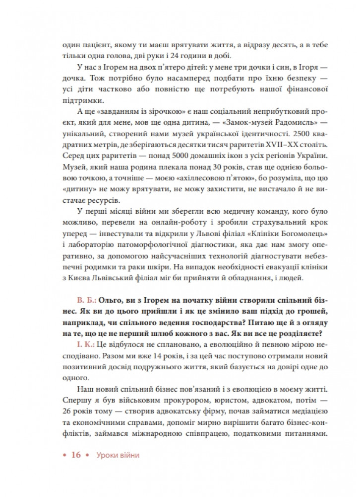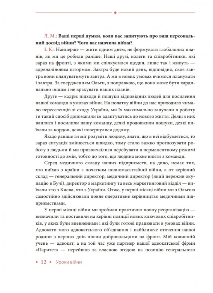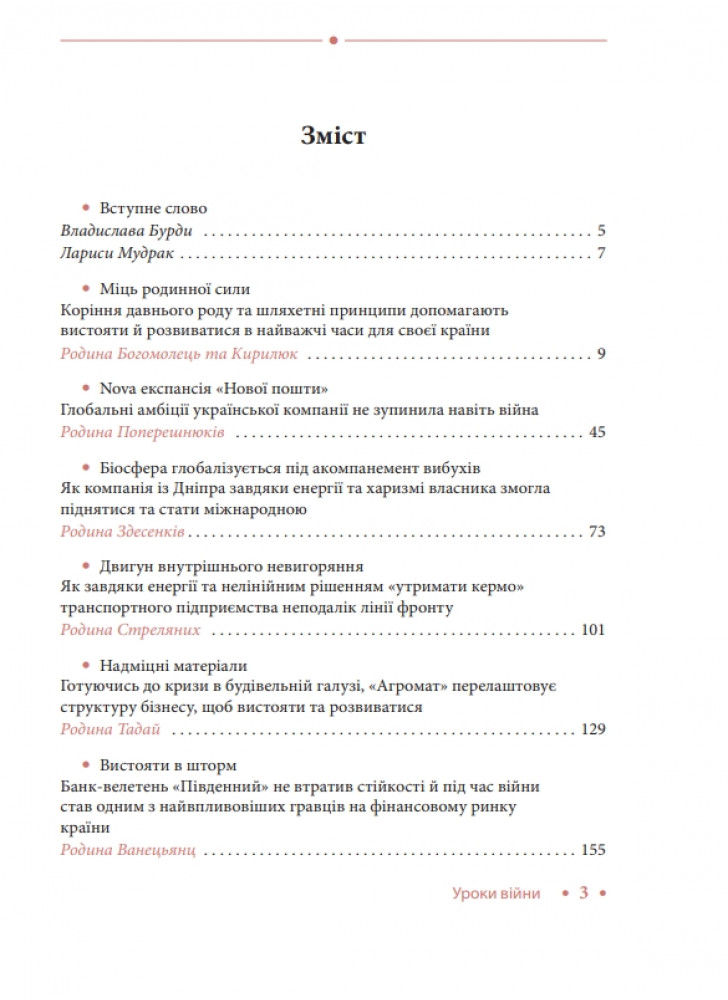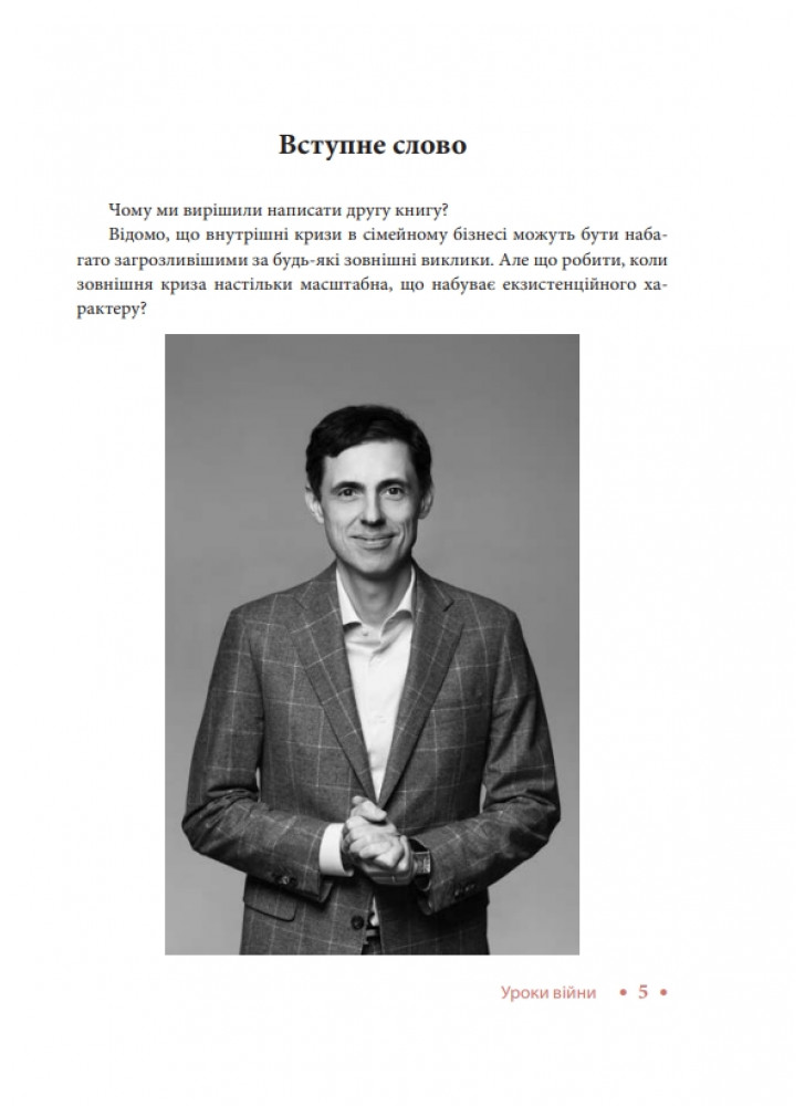 Лариса Мудрак, CEO FBN Ukraine, експерт з комунікацій вищого політичного рівня, політичний та громадський діяч, журналіст і публіцист. «З часу повномасштабного вторгнення в нас із Владиславом та командою накопичилося матеріалів на кілька томів. Ми ділимося, щоб біль і досвід війни перетворити на силу». Книга «Уроки війни» є продовженням циклу про сімейний бізнес під час війни. Перша книга циклу вийшла у 2023 році.