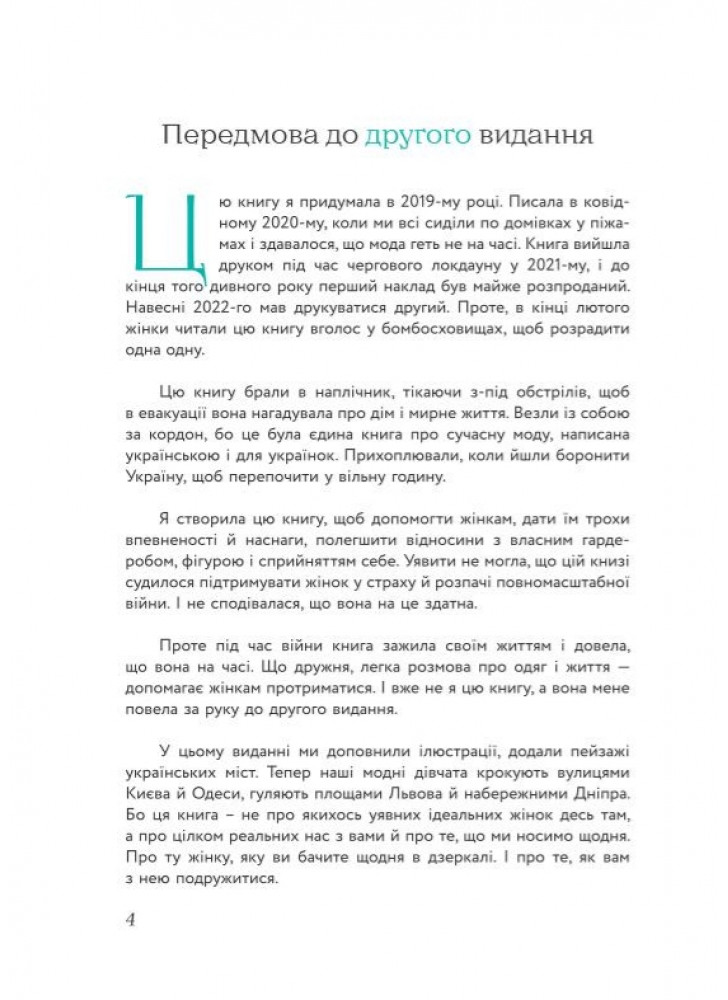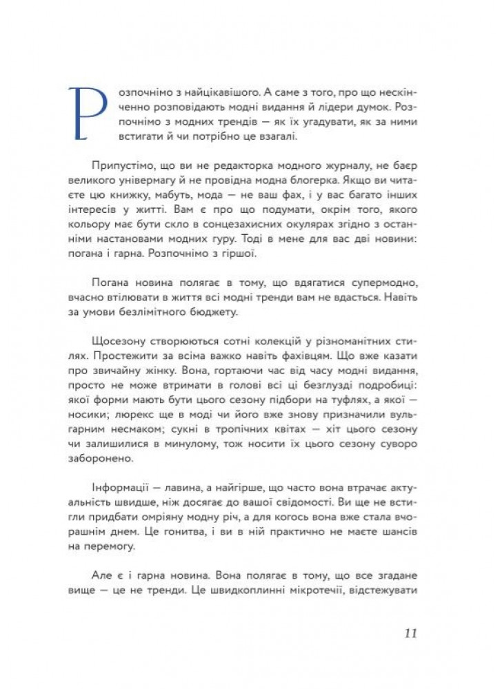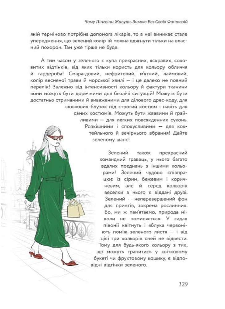 Ця книга руйнує стереотипи щодо вбрання і спростовує сталі упередження. Маленька чорна сукня не всім пасує, горизонтальні смужки не завжди повнять і навіть леопардовий малюнок може бути іноді дуже доречним. В книзі ви знайдете практичні поради щодо того, як побудувати свій власний стиль, як обирати та комбінувати одяг.