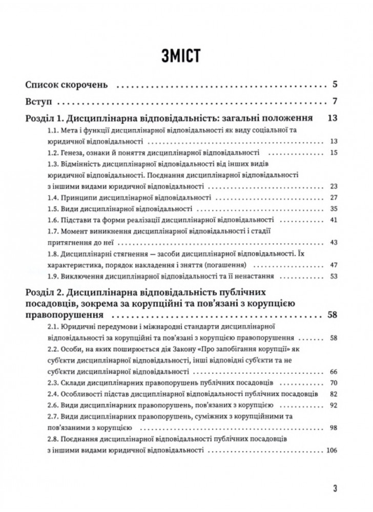 У книзі розглянуто юридичні передумови і міжнародні стандарти дисциплінарної відповідальності за корупційні та повʼязані з корупцією правопорушення, субʼєкти такої відповідальності взагалі та особливості підстав дисциплінарної відповідальності публічних посадовців, види дисциплінарних корупційних правопорушень, дисциплінарних правопорушень, повʼязаних з корупцією, та суміжних з ними, особливості дисциплінарних стягнень, що застосовуються до публічних посадовців, та порядок їх накладення і зняття (погашення), додаткові заходи дисциплінарної відповідальності публічних посадовців тощо.