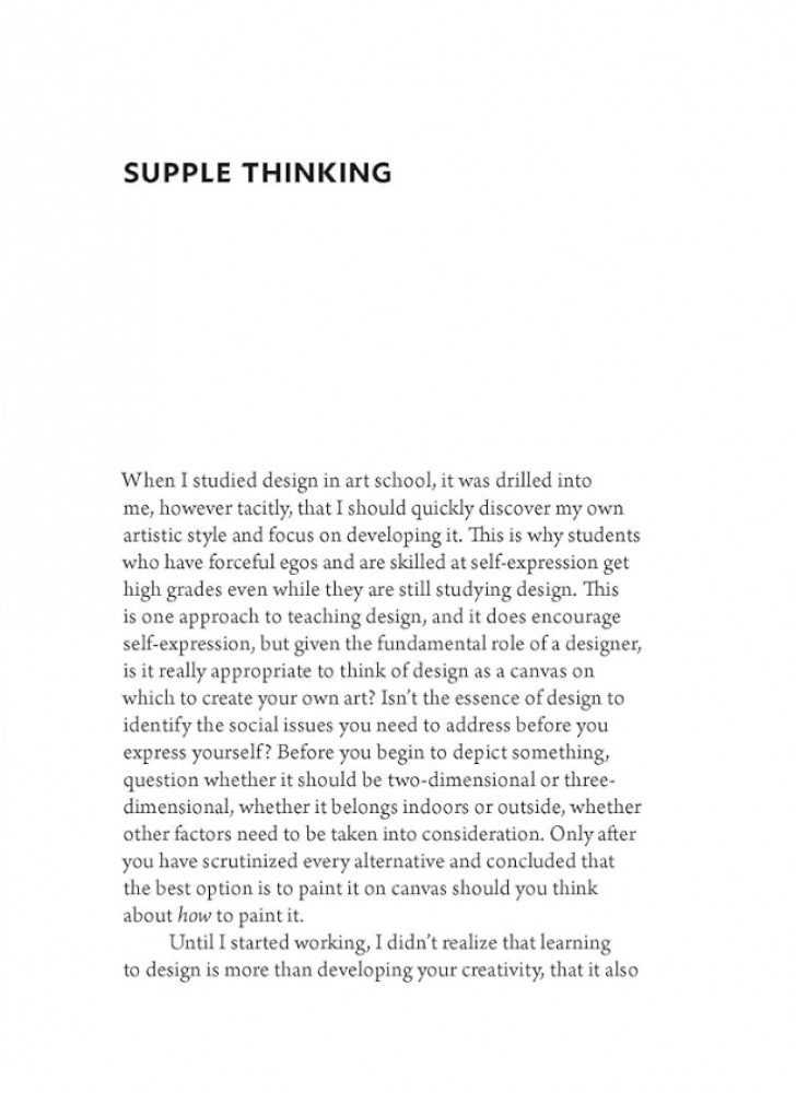 У цьому тонкому, але потужному томі Сато пояснює свою філософію на реальних прикладах — від естетики застарілої крамниці рамену до дитячого майданчика на даху, натхненного ономатопією. Закликаючи читачів цінувати повсякденні предмети та простори та поставити під сумнів спокусу зручності, він доносить повідомлення, що сягає корінням у минуле, але ідеально підходить до нашого часу.