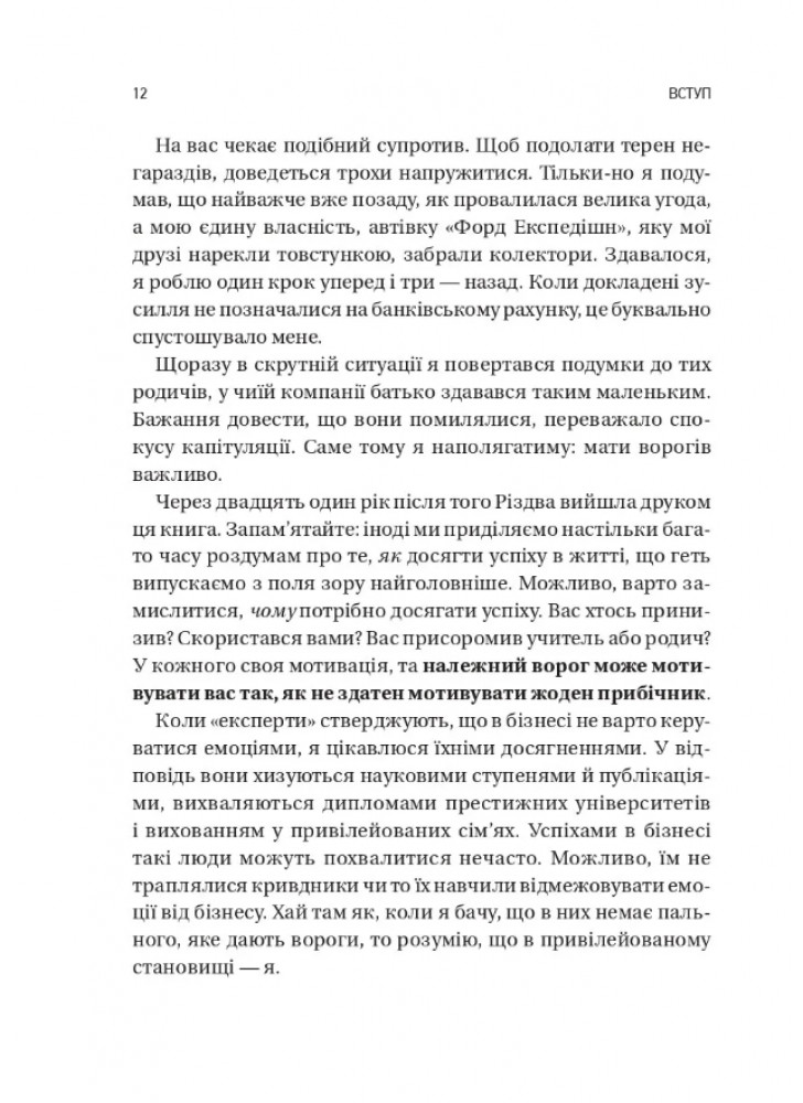 Вони розглядають конкуренцію та навіть ворожнечу як незмінну супутницю успіху й розповідають, як знайти важелі для управління ворогами та використання суперництва задля власних цілей. Поради щодо розвитку лідерських якостей і подолання страху конкуренції. Цінні знання з конфліктології та ефективного керівництва. Практичний ґайд з усвідомленого суперництва.