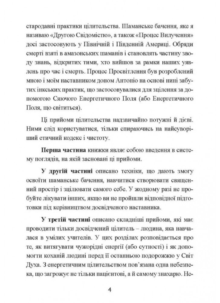 «Шаман, мудрец, целитель» – сугубо практическая работа. «Целительские практики, которые я овладел и отточил благодаря своему наставнику- индейцы, являют собой древние приемы создания священных мест, где могут потом случаться настоящие чудеса. Священные места позволяют войти в бесконечность и почувствовать просветление, которое в этом безвременье происходит мгновенно....