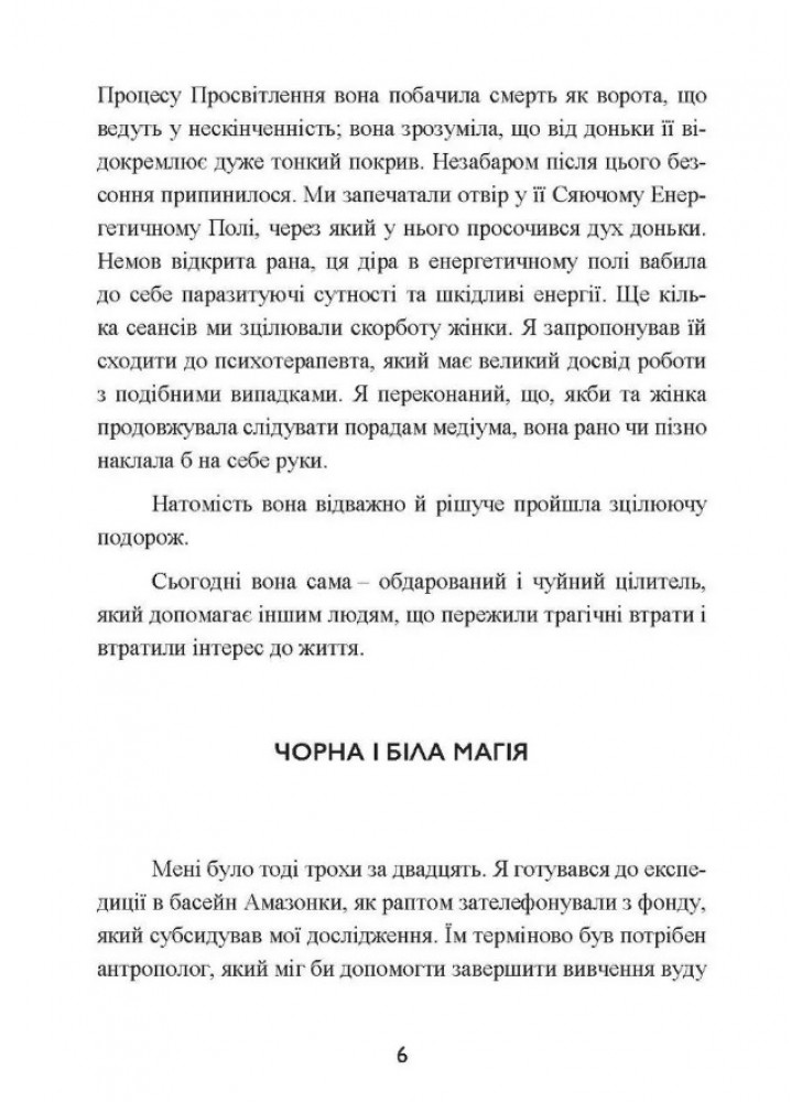 Это не только психологический или духовный процесс, он обновляет каждую клетку организма. Иммунно система получает полную свободу, после чего начинается стремительное физическое и эмоциональное исцеление. Чудеса становятся обыденностью: происходят спонтанные ремиссии - те случаи загадочных выздоровлений, ставящих в тупик врачей». Книга содержит упражнения, помогающие пробудить в себе способность видеть незримый энергетический мир. Это мощные практические методы, позволяющие воспринимать пространство. между предметами и сияющей действительностью, которая нас окружает.
