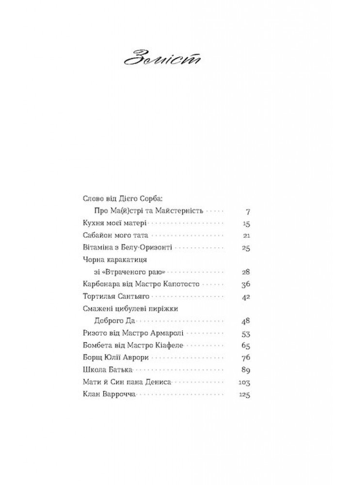 Книга Марко Черветти – это ода вкусам и текстурам, философии мастеров, годами выверявших свои рецепты, и традициям, которые передавались из поколения в поколение. Марко рассказывает истории застолье и делится рецептами, бережно отобранными им во время многочисленных странствий по миру, — от украинского борща и луковых пирожков Доброго Да до карбонары римского мастера и кесадильи из Мехико-сити.