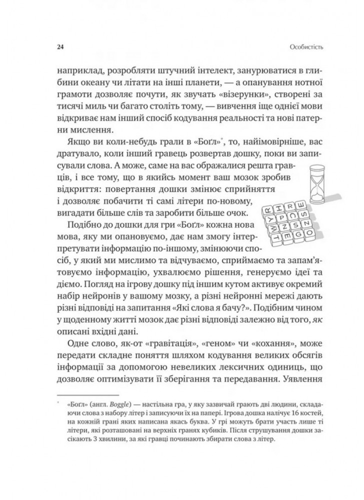 Мы живем в мире кодов. Поэзия, музыка, математика, английский, язык жестов – отдельные языковые коды, гармонично сочетающиеся в нашем мозгу. И чем больше таких кодов у нас есть, тем легче нам доставать и интерпретировать информацию, генерировать новые идеи, строить карьеру, ускорять радикальный прогресс. Потому что эти коды определяют, как мы воспринимаем себя и других, окружающий мир, как решаем проблемы, на что обращаем внимание, что помним.