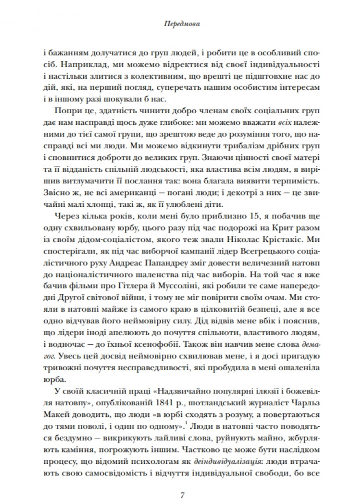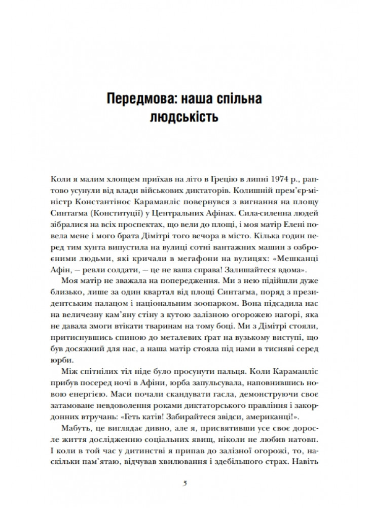 На багатьох яскравих прикладах - від різноманітних історичних та сучасних культур до суспільств, сформованих після корабельних аварій, спільнот онлайнігор, створених навмисно, мешканців комун, які прагнуть утопії, та груп людей, які взаємодіють зі штучно створеними ботами, - Ніколас А. Крістакіс показує, що ми ніколи не зможемо повністю уникнути соціального плану. Спираючись на останні досягнення в соціальних науках, еволюційній біології, генетиці, нейробіології та мережевій науці, автор показує, як і чому еволюція вивела нас на гуманний шлях і чому спільна людяність об'єднує набагато більше, ніж роз'єднує.