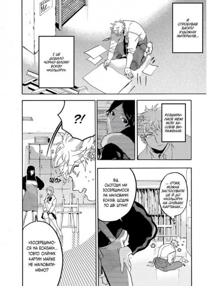 «Чи справді я хочу малювати?» «Чи варте це моїх зусиль?» Саме ці запитання повсякчас ставить собі Ятора в четвертому томі «Блакитного періоду», де розгортається справжня психологічна битва: талант проти сумнівів, прагнення проти страху. Хлопець все ще новачок у світі мистецтва, проте мусить довести — передусім собі — що відданість і наполегливість може перемогти природний хист.