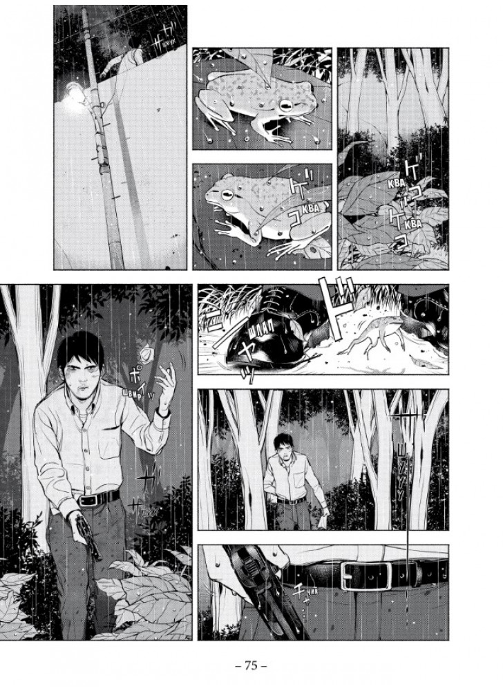 Однажды июньским утром детектив отдела уголовных дел Токийской полиции Савамура Хисаши начинает расследование таинственного и сверхжесткого убийства — скормленной голодным псам женщины. Между тем начинают возникать новые и не менее гротескные преступления, цепочка которых ведет к таинственному художнику в маске лягушки.
