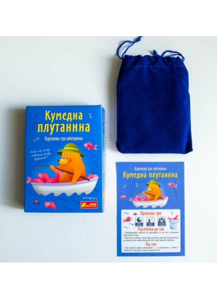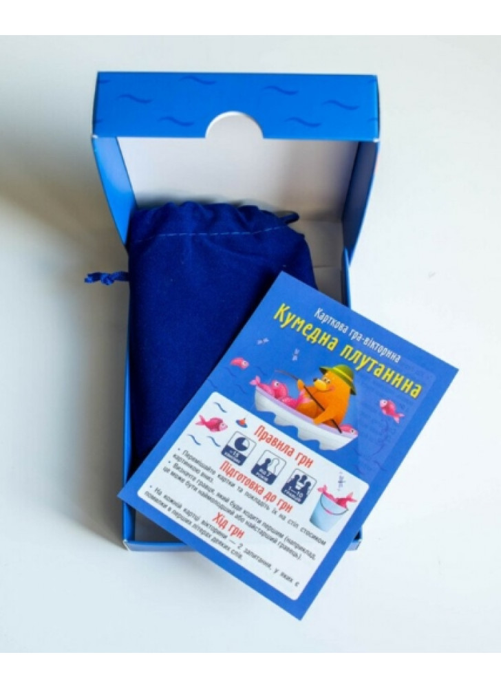 Головні переваги гри «Кумедна плутатина»: Універсальний формат: ідеально підходить для гри вдома, у школі, на вечірках або в дорозі. У комплекті стильний велюровий мішечок — картки завжди в порядку й під рукою. Весела мовна гра! Слова навмисно переплутані — гравці мають швидко «розшифрувати» фразу, першими зрозуміти суть і правильно відповісти. Сміх — гарантовано! Кожна картка — це вибух гумору, несподіваних фраз і веселих помилок, які перетворюють гру на справжнє шоу.