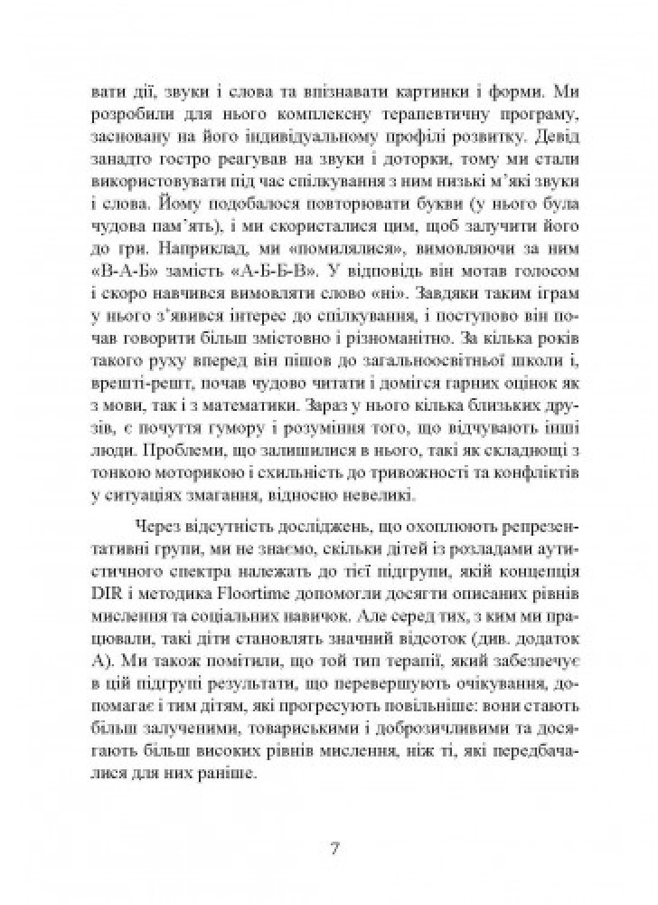 В книге впервые на украинском языке представлена распространенная система помощи детям с расстройствами аутистического спектра DIR/Floortime, разработанная профессором Стэнли Гринспеном – одним из крупнейших в мире специалистов в этой области. Методику успешно применяют в работе с детьми с раннего возраста, подростками и взрослыми людьми.