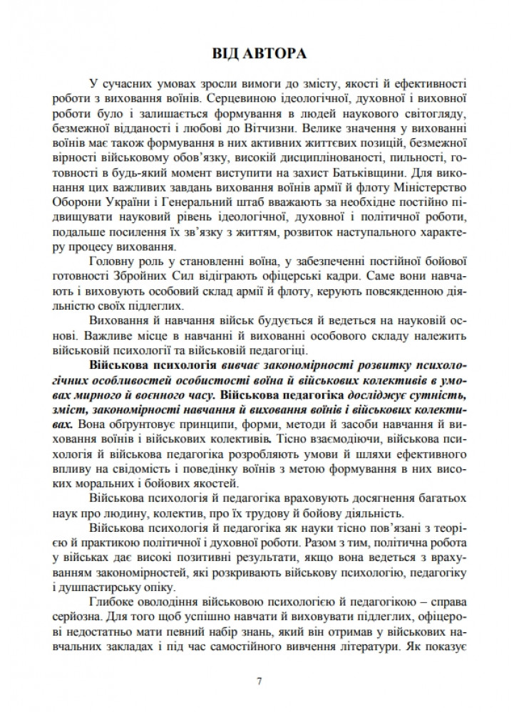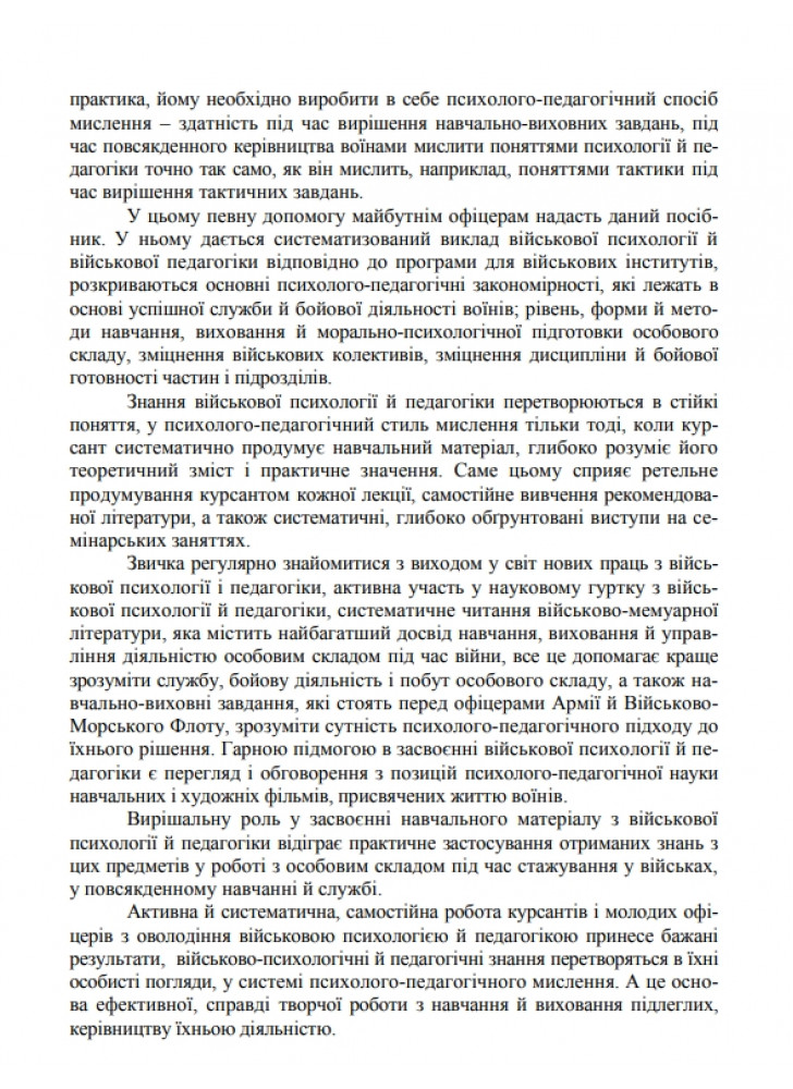 Навчальний посібник призначено для забезпечення навчального процесу студентів вищих навчальних закладів всіх форм навчання з дисциплін «Основи психології та педагогіки» та курсантів вищих навчальних закладів з дисциплін «Основи військової психології та педагогіки», а також для командирів військових підрозділів та їх заступників по виховній роботі.