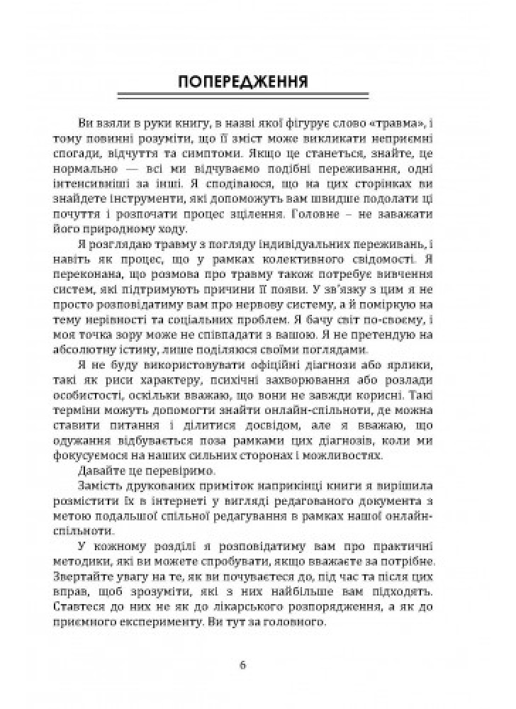 Делитесь знаниями, упражнениями и техниками, способствующими вашему посттравматическому росту, то есть помогут прийти в новое, более устойчивое и гармоничное состояние. Как мозг и тело реагируют на травму? В чем особенности детской психотравмы? Почему справиться с болезненным опытом бывает так непросто? В книге вы найдете ответы на главные вопросы, связанные с психотравмой, примеры работы с ней, уникальные лечебные практики разных культур для снятия стресса и напряжения.