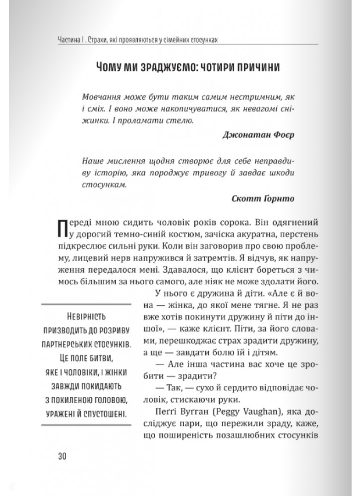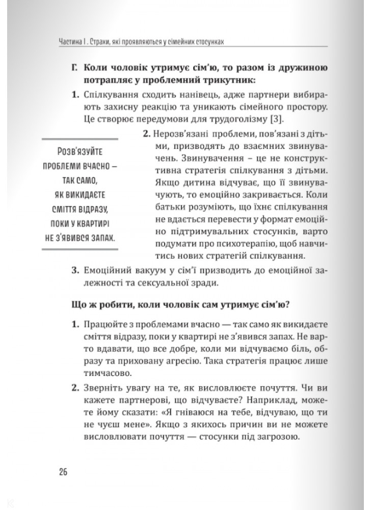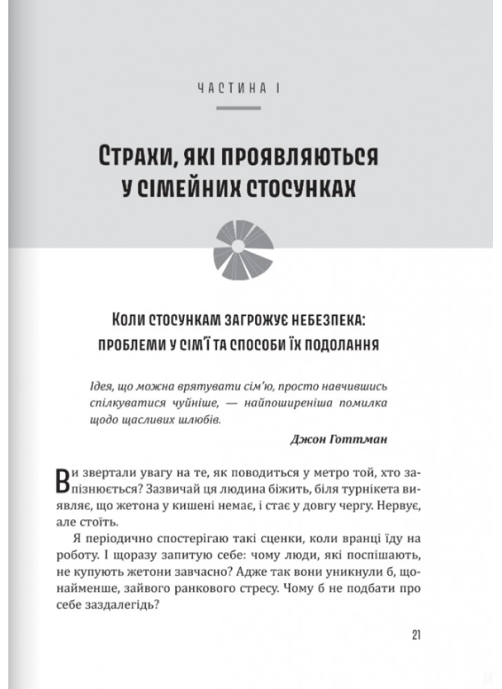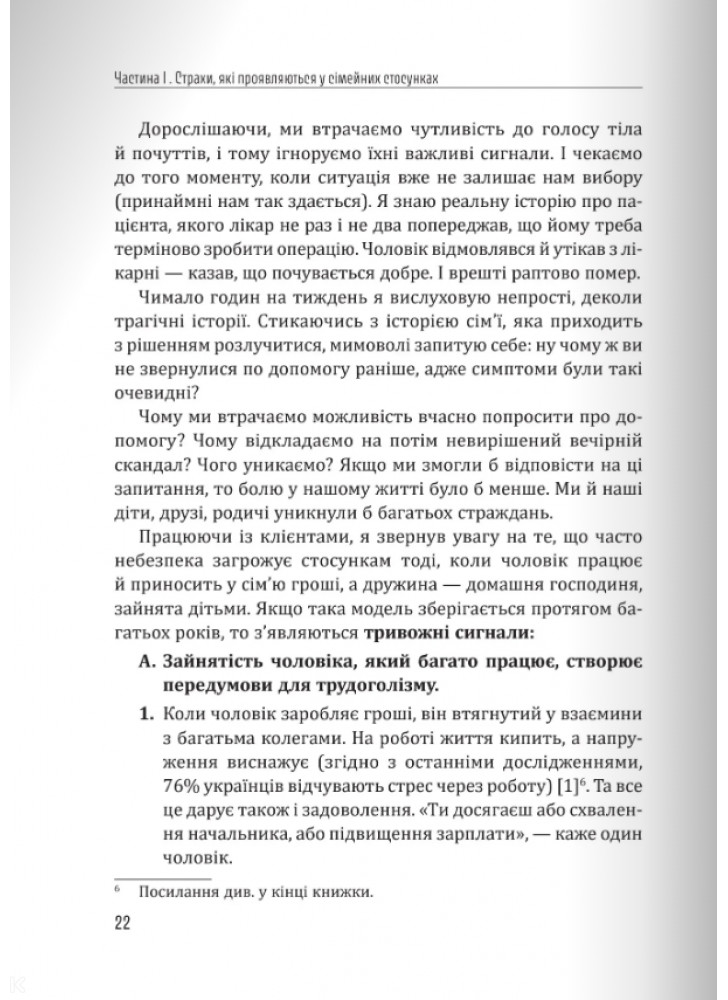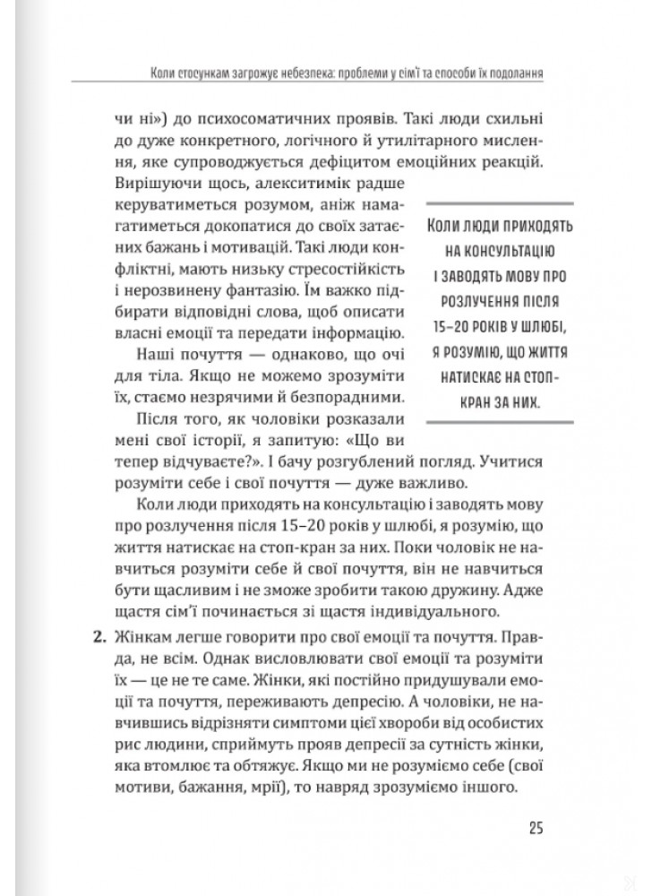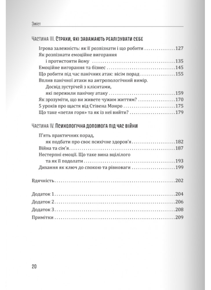 Тривога, відчуття провини, злість, страх стають на заваді нашому щастю й самореалізації – як упоратися з цими почуттями? Автор розглядає з погляду екзистенційного аналізу такі життєві теми, як образа, прощення, стосунки, шлюб і розлучення, насильство у сім’ї, співзалежність, емоційний контакт, прив’язаність, зв’язок поколінь, довіра, залежність від ґаджетів, емоційне вигорання, психологічну травматизацію у сучасних реаліях…