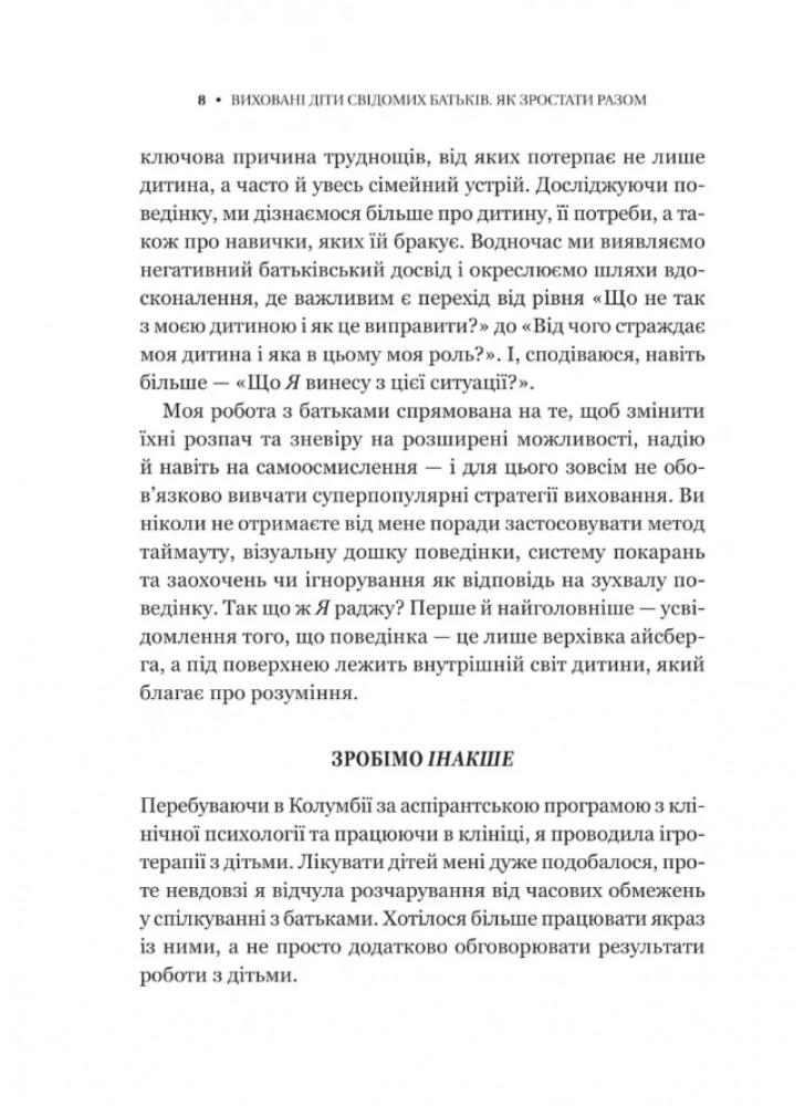С долгими годами работы в психологии автор заметила: хотя имеющийся доказательный подход положительно влияет на поведение детей, однако вовсе не фокусируется на первопричине неожиданных капризов или грубостей. Ключ к решению вопросов скрыт во взаимном развитии ребенка и родителей, где на замену авторитарным методам приходят практики налаживания связи и доброты.
